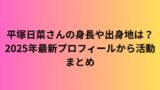 その他テレビ出演者関連記事はこちらから→平塚日菜さんの身長や出身地は?2025年最新プロフィールから活動まとめ
