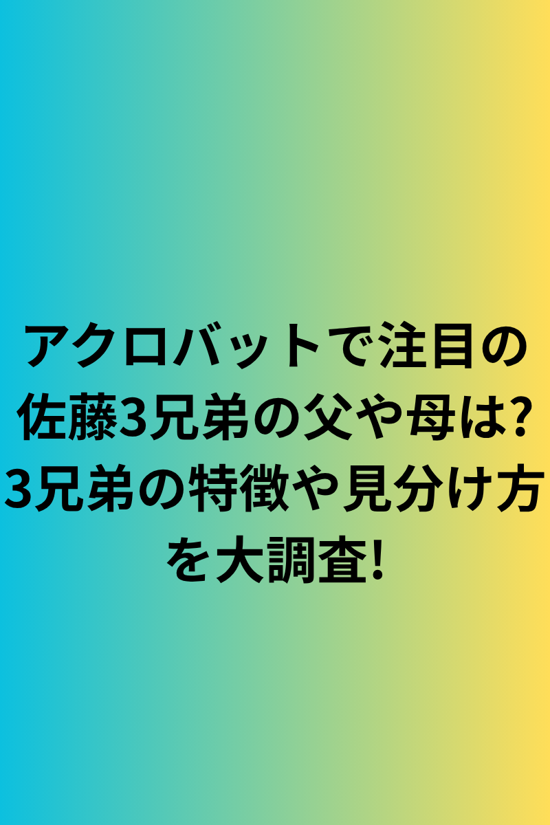 アクロバットで注目の佐藤3兄弟の父や母は?
