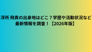 元気浮所 飛貴の出身地はどこ?学歴や活動状況など最新情報を調査!【2026年版】 現在STARTOエンターテインメント(旧ジャニーズ事務所)所属のアイドルグループ・ACEesのメンバーとして活動している浮所飛貴さん。彼の出身地や学歴、そして2025年の最新活動状況について詳しく調査してみました!浮所 飛貴の出身地はどこ?... 2025.09.02元気