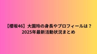 元気【櫻坂46】大園玲の身長やプロフィールは?2025年最新活動状況まとめ 櫻坂46のメンバーとして活躍する大園玲さん。その魅力に惹かれているファンの方も多いのではないでしょうか。 この記事では、大園玲さんの基本プロフィール(身長や生年月日など)から、2025年の最新活動状況まで、詳しくご紹介します。彼女の魅力を改... 2025.10.09元気