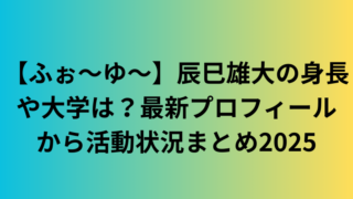 元気【ふぉ〜ゆ〜】辰巳雄大の身長や大学は?最新プロフィールから活動状況まとめ2025 ジャニーズJr.内ユニット「ふぉ〜ゆ〜」のメンバーとして活躍する辰巳雄大さん。1998年の入所から26年以上、CDデビューせずにジャニーズJr.という道を選び、舞台を中心に独自のキャリアを築いてきました。2025年は主演舞台が続々と公開され... 2025.12.01元気