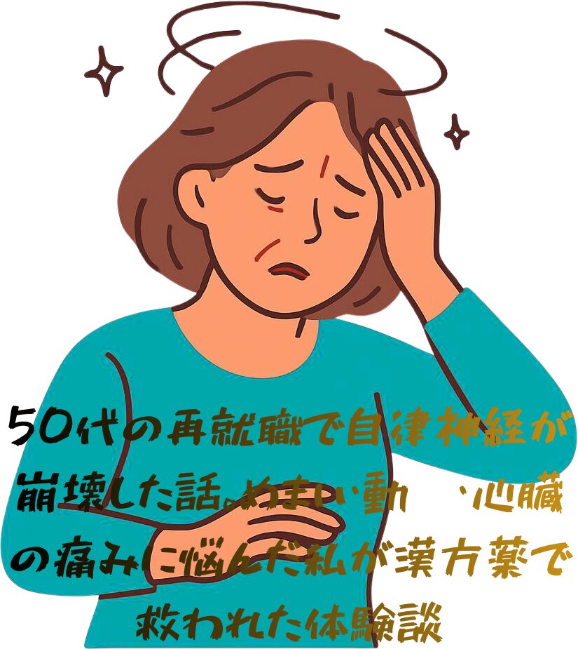 ・50代の再就職で自律神経が崩壊した話はこちら👉50代の再就職で自律神経が崩壊した話。めまい・動悸・心臓の痛みに悩んだ私が漢方薬で救われた体験談