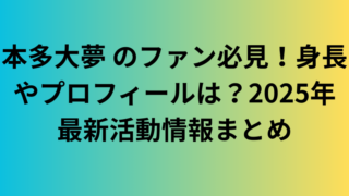 本多大夢 のファン必見!身長やプロフィールは?2025年最新活動情報まとめ