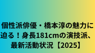 個性派俳優・橋本淳の魅力に迫る!身長181cmの演技派、最新活動状況【2025】